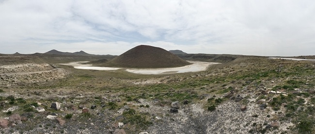 Teknolojiden para kazanıp, teknolojiden anlamayan biri olarak kendimi lanse ederim hep. Şu telefonlara bir türlü alışamadım. İlk defa panaromik fotoğraf çekmiş olabilirim. ve karşınızda Meke Tuzlası. Burası dünyanın Nazar Boncuğu...
